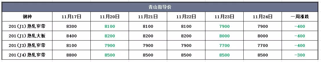 雖目前主流鋼廠趨穩態度不變,但也不乏個別有大幅調整。本周,青山鋼廠代理201熱軋指導價接二連三地下調,價格跌破8000,再一次令市場嘩然!而今日市場又傳某中頻即將複產,熱軋價格或再掀波瀾!